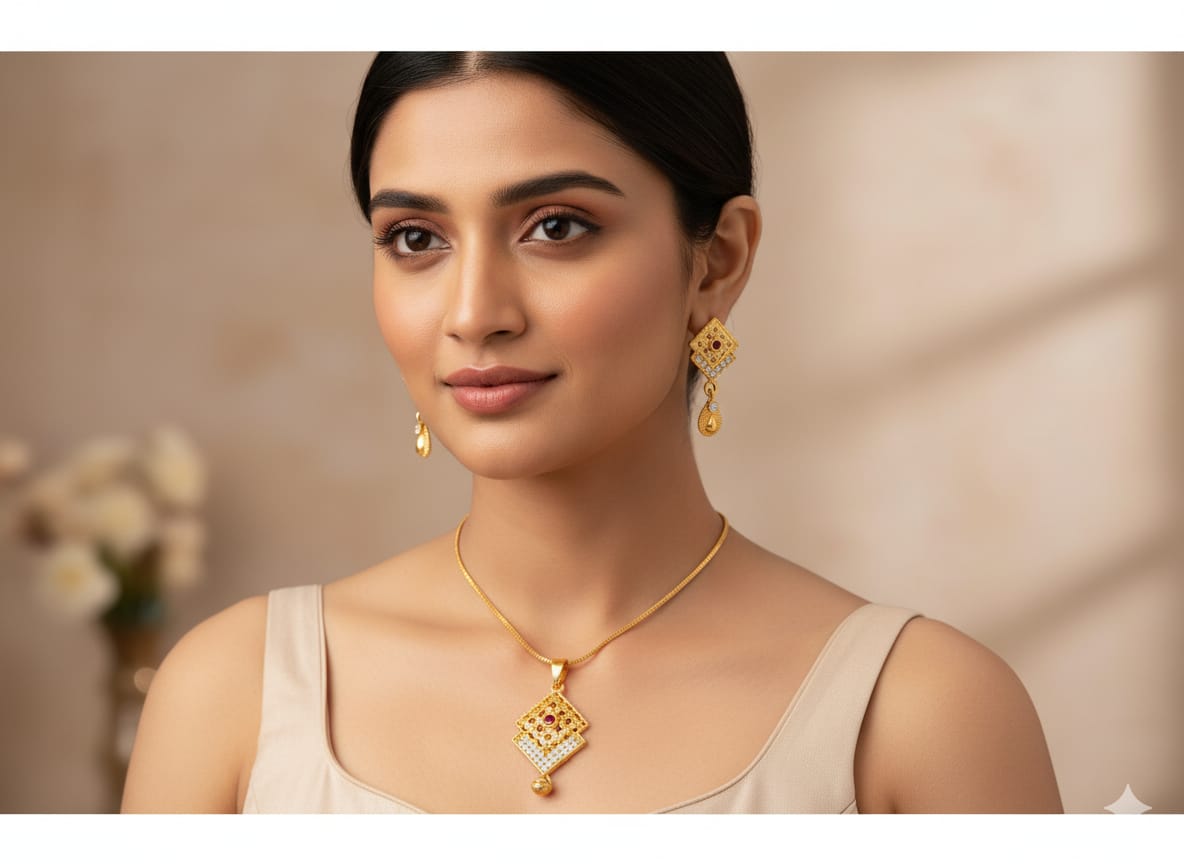 Keywords: When listing on Amazon, use relevant keywords (e.g., “Gold Plated Jewellery Set,” “Pendant Earring Set,” “Ethnic Jewellery,” “Party Wear Jewellery,” etc.) to help customers find your product easily.