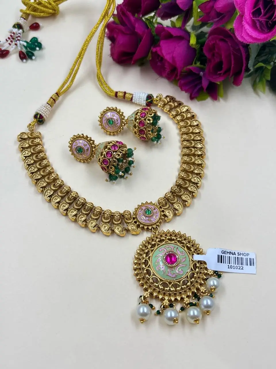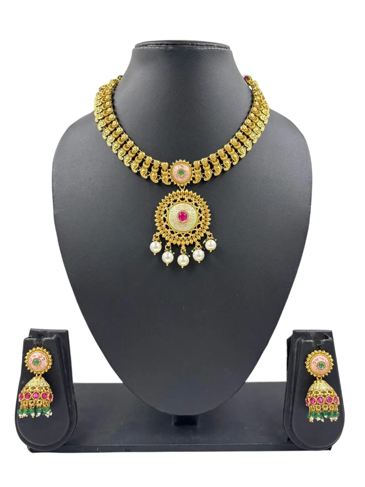This jewelry set blends traditional artistry with modern elegance—perfect for women who want to make a bold, graceful statement. Pair it with sarees, lehengas, or ethnic gowns for a stunning look.